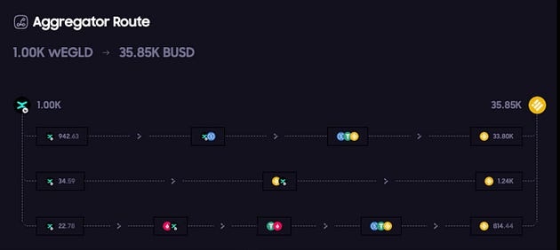 For example, if you want to make a 1000 wEGLD-BUSD trade, it may distribute your trade into a 950 wEGLD-BUSD trade on AMM1, 30 wEGLD-BUSD trade on AMM2, and the rest on the third route.