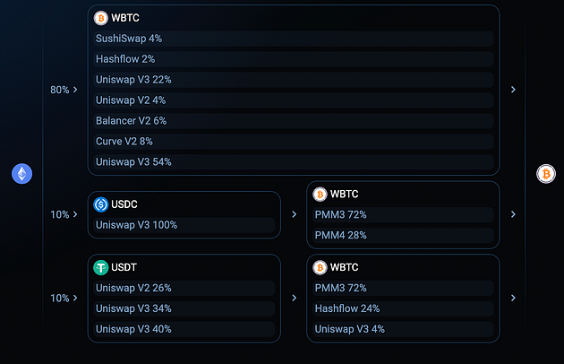 This type of routing has been implemented on many leading multi-chain DEX aggregators, such as 1inch, ParaSwap, and KyberSwap.