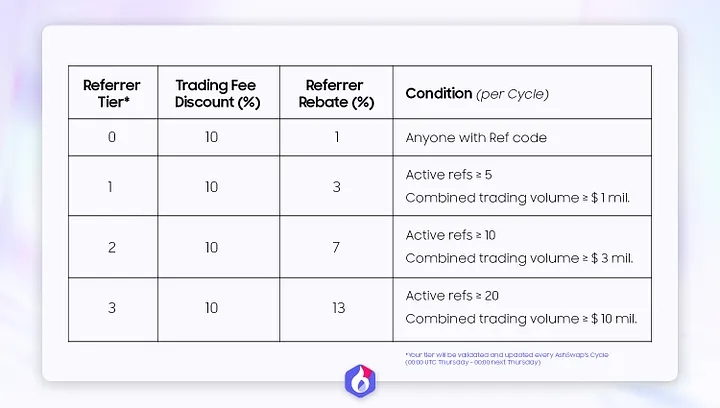 User’s Referral tier will be validated and updated every AshSwap's Cycle